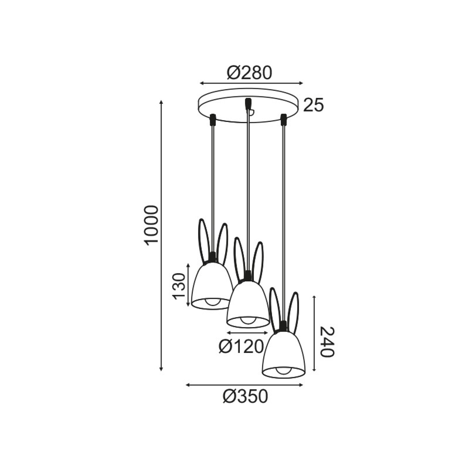 PENDANT LUMINAIRE 3ΧΕ27 PINK META D35XH100CM BUNNY