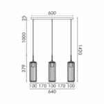 FAME-PENDANT LAMP BLACK GLASS-IRON CONVENTIONAL IP20 3xE27 L640xW100xH1420mm